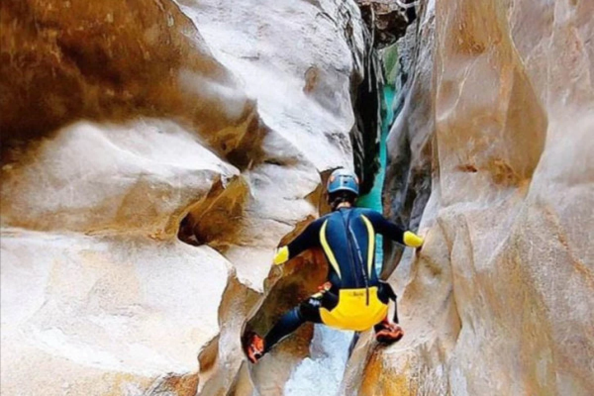 Après une marche d’approche de 10 minutes en descente dans une forêt ombragée, on s’engage dans le canyon du Riolan qui commence par une descente douce de randonnée aquatique. Puis votre guide vous équipera de baudrier, casque et combinaison néoprène afin de commencer le vrai canyon. Des sauts et une initiation au rappel débute puis on s’hydratera avec une petite source de montagne rafraîchissante. Puis les toboggans, les sauts et les rappels s’enchaîne sans interruption pendant 2 heures au milieu de falaise de plus de 100 mètres de haut.Viendra la pause repas dans une place au milieu des montagnes au bord du canyon afin de reprendre des forces. Que vous soyez en famille ou entre amis, ce canyon est une perle d’aventure. Il ne restera plus qu’à profiter des 2 heures finales avec des enchaînements de sauts et toboggans dans un cadre toujours aussi féeriques.Après ce moment de fun et de détente, vous arriverez au pont romain qui se situe à côté de votre voiture. Quel moment inoubliable.