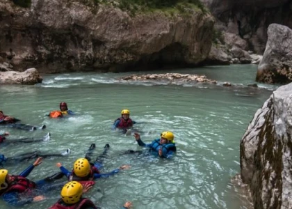 - Nage en eau vive : Technique de nage utilisée dans les parties du canyon où le courant est fort, nécessitant des compétences spécifiques pour se déplacer en sécurité.