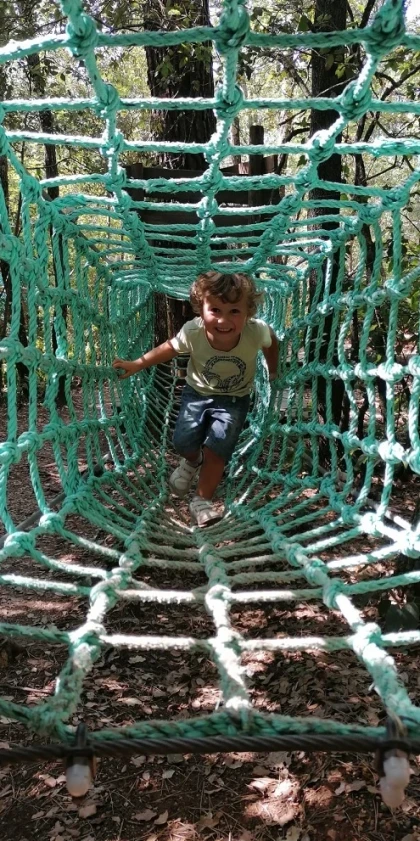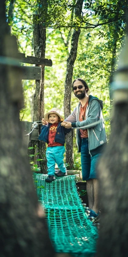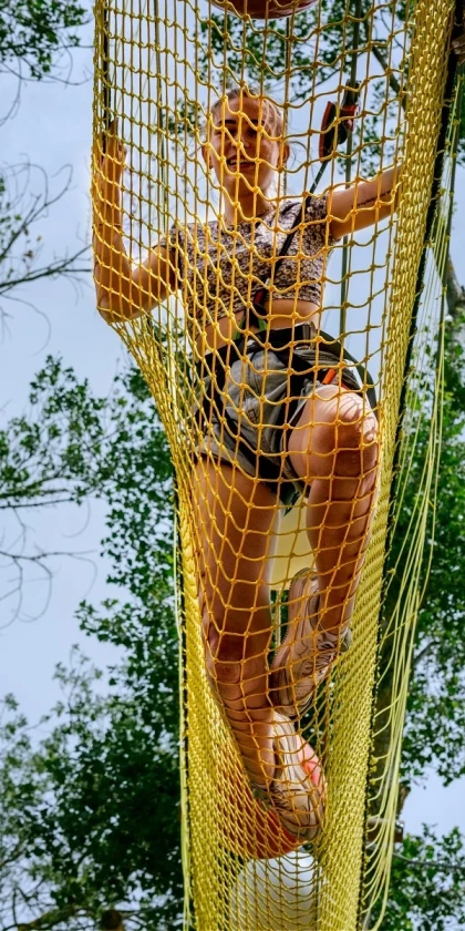 Côté aventure, le parc propose des parcours d’accrobranche adaptés à tous les âges. Le plus simple est accessible dès 4 ans, tandis que des parcours plus exigeants attendent les enfants plus âgés et les adultes. Les filets suspendus ajoutent une touche ludique et permettent de s’amuser en toute sécurité.