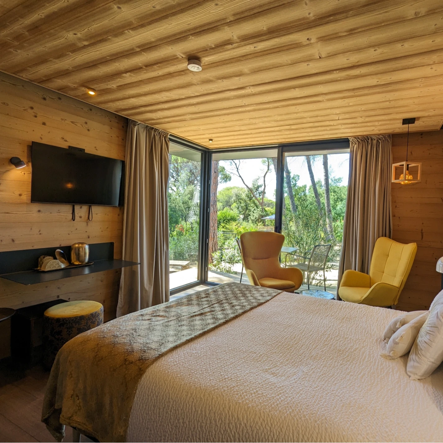 Et si, pour les ponts de mai, vous vous une escapade en pleine nature, dans un lodge cosy et moderne, niché sous les pins parasols de Saint-Raphaël ? Ce week-end, on vous propose une parenthèse hors du temps, où l'on échange le bruit de la ville contre le chant des cigales, et les murs d’un hôtel classique contre un cocon de bois chaleureux, tout juste installé aux portes du massif de l'Estérel.