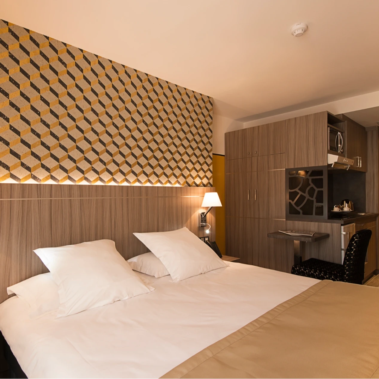 - Une chambre rénovée dans un hôtel 4 étoiles.