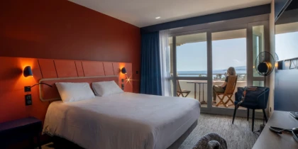 Idéalement situé à 5 minutes à pied de la gare, cet hôtel est parfait pour ceux souhaitant découvrir la Côte d’Azur sans voiture. En bord de mer, il permet de profiter de balades matinales sur la plage, de toutes les animations du centre-ville, ainsi que des restaurants, cafés et cinéma à proximité.
