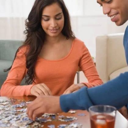 Faites un puzzle : rien de tel qu'un puzzle pour passer du temps à deux un jour de pluie,. Choisissez-en un un peu complexe pour le défi, il demande de la patience et de la coopération, parfait pour se concentrer ensemble tout en restant bien au chaud à l’intérieur.