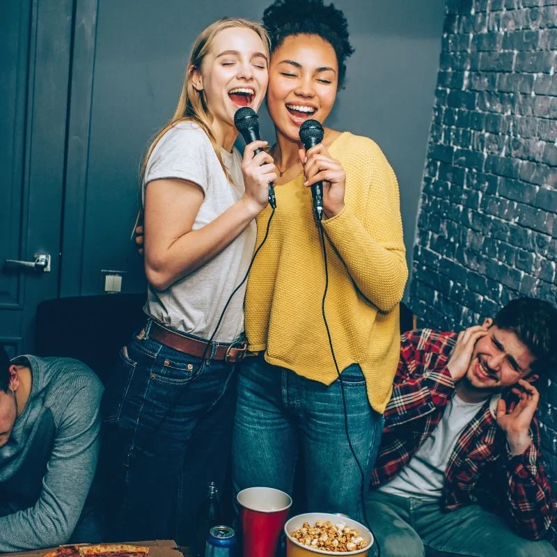 Karaoké : toujours dans l'idée d'organiser des activités à la maison quand il pleut avec vos amis, vous pouvez prévoir une soirée karaoké. Sortez le micro (ou utilisez votre téléphone) et lancez-vous dans des duels de chant endiablés ! Les chansons à l’ancienne ou les derniers hits, c’est à vous de choisir.
