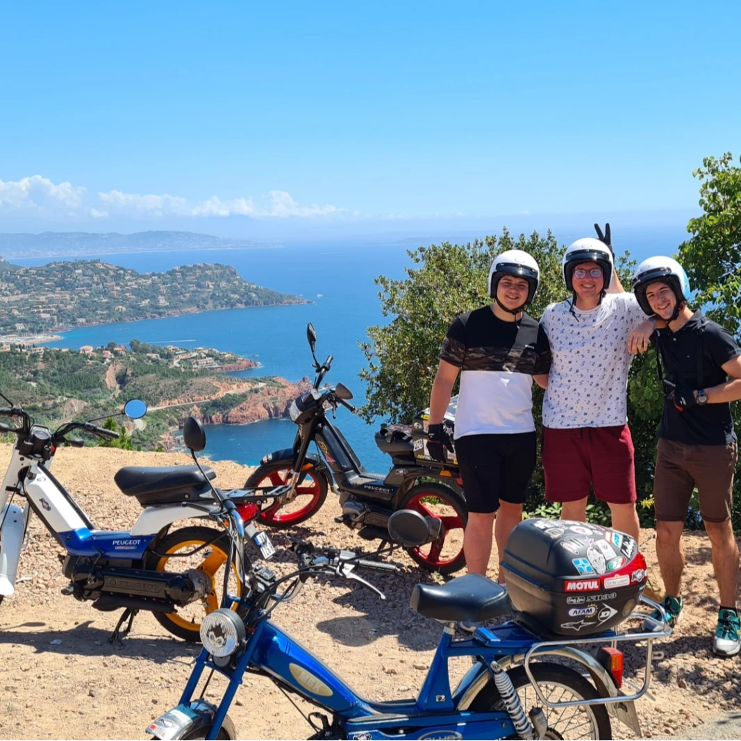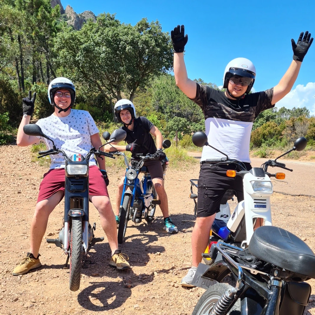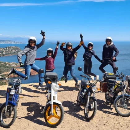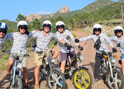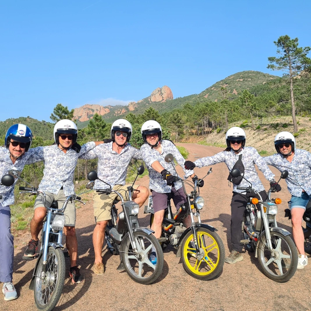Si vous cherchez à surprendre le futur marié avec une activité différente et originale pour son enterrement de vie de garçon, optez pour une excursion en mobylette vintage au cœur du massif de l'Estérel. Cette aventure unique est idéale pour ceux qui préfèrent la détente aux sensations fortes et qui n'ont pas forcément envie de s'aventurer en mer. Vous longerez la Corniche d'Or, une route panoramique à couper le souffle qui vous offrira des vues exceptionnelles sur les falaises rouges et la mer Méditerranée. À chaque virage, vous serez émerveillés par la beauté des paysages, tout en profitant du charme de ces petites mobylettes rétro. L'excursion se fait à votre rythme, dans une ambiance conviviale et détendue, avec une passionnée et véritable collectionneuse comme guide. Cette activité est bien plus qu'un simple tour en moto : c'est une véritable immersion dans l'authenticité de la région, vous permettant de découvrir ses recoins les plus secrets, tout en roulant avec style. Loin de l’agitation, vous partagerez un moment intime et agréable, où le futur marié pourra savourer cette expérience insolite et mémorable, tout en renforçant les liens avec ses amis. Que ce soit pour la découverte des paysages ou pour le plaisir de conduire une mobylette vintage, cette sortie fera sans aucun doute de son EVG un moment inoubliable.
