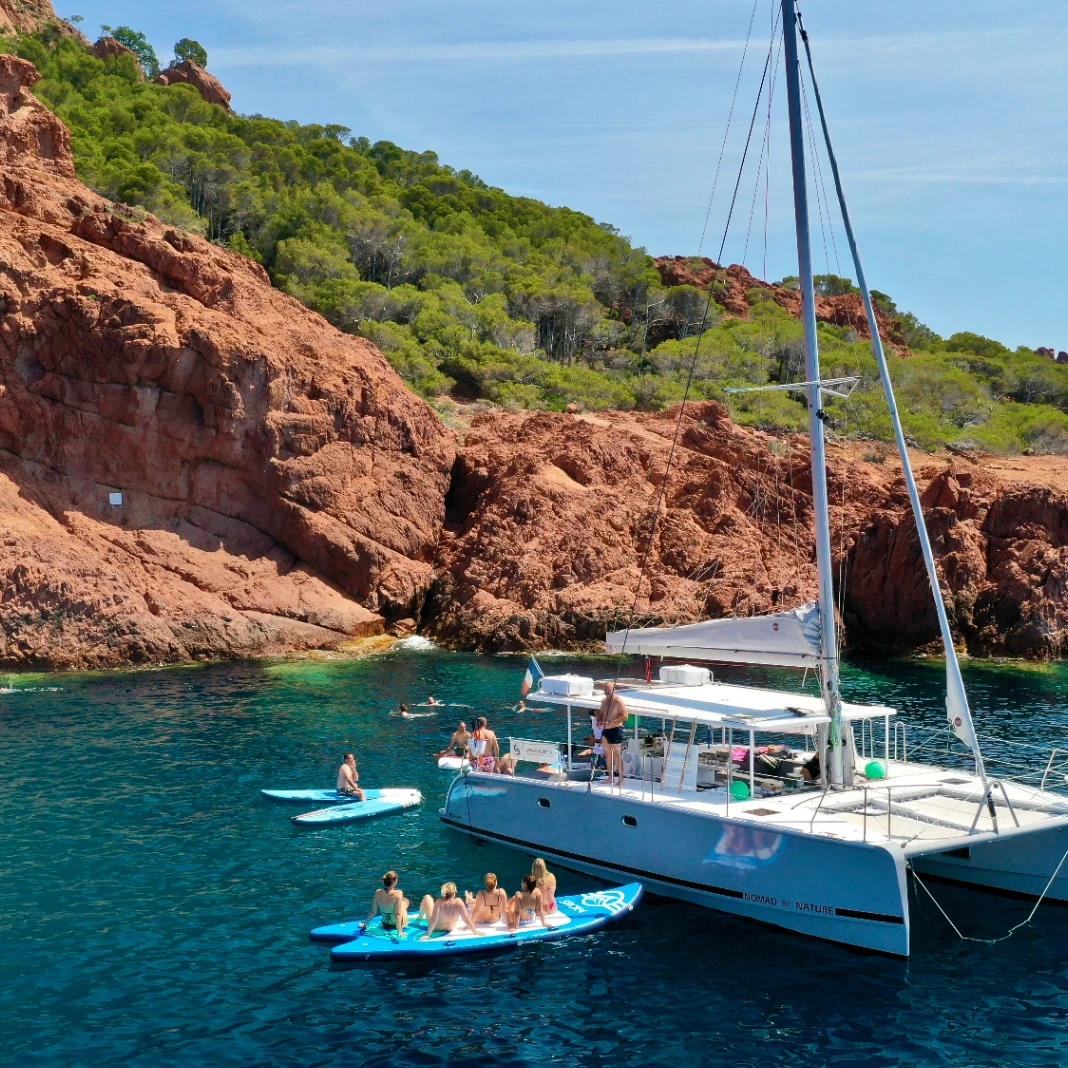 Pour une journée de farniente, rien de tel qu’une croisière à bord d’un catamaran. Laissez-vous bercer par le doux mouvement des vagues, profitez des filets pour bronzer et faire la sieste au soleil, tout en vous arrêtant régulièrement pour des baignades rafraîchissantes. À bord, des activités comme le kayak ou le paddle sont également disponibles pour ceux qui souhaitent se divertir. Vous pouvez choisir de privatiser votre propre catamaran et passer la journée entre amis, à votre rythme, en mettant la musique de votre choix. Si vous préférez l'option croisière, optez pour un maxi catamaran avec buffet, pauses baignades et open bar pour une ambiance festive tout au long de la journée.