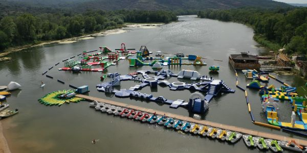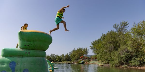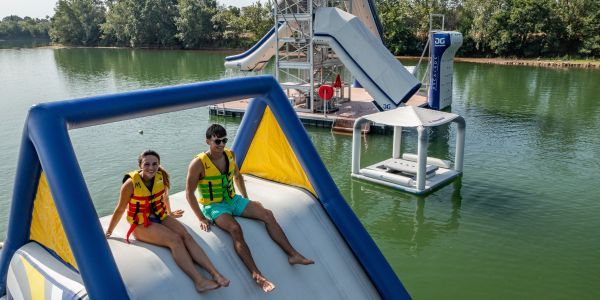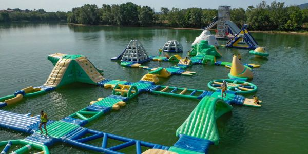 Installé dans un cadre naturel préservé, réservez une session de 30 minutes pour découvrir ce parc aquatique, véritable terrain de jeu flottant avec trampolines, toboggans, murs d’escalade, ponts flottants et catapultes.