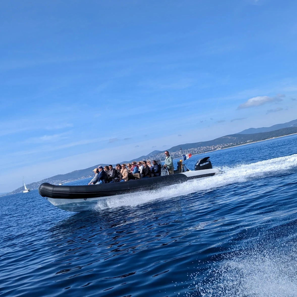 Pour une sortie plus intime, vous pouvez optez pour une excursion en semi-rigide (12 personnes max) depuis Saint-Raphaël ou Cannes.