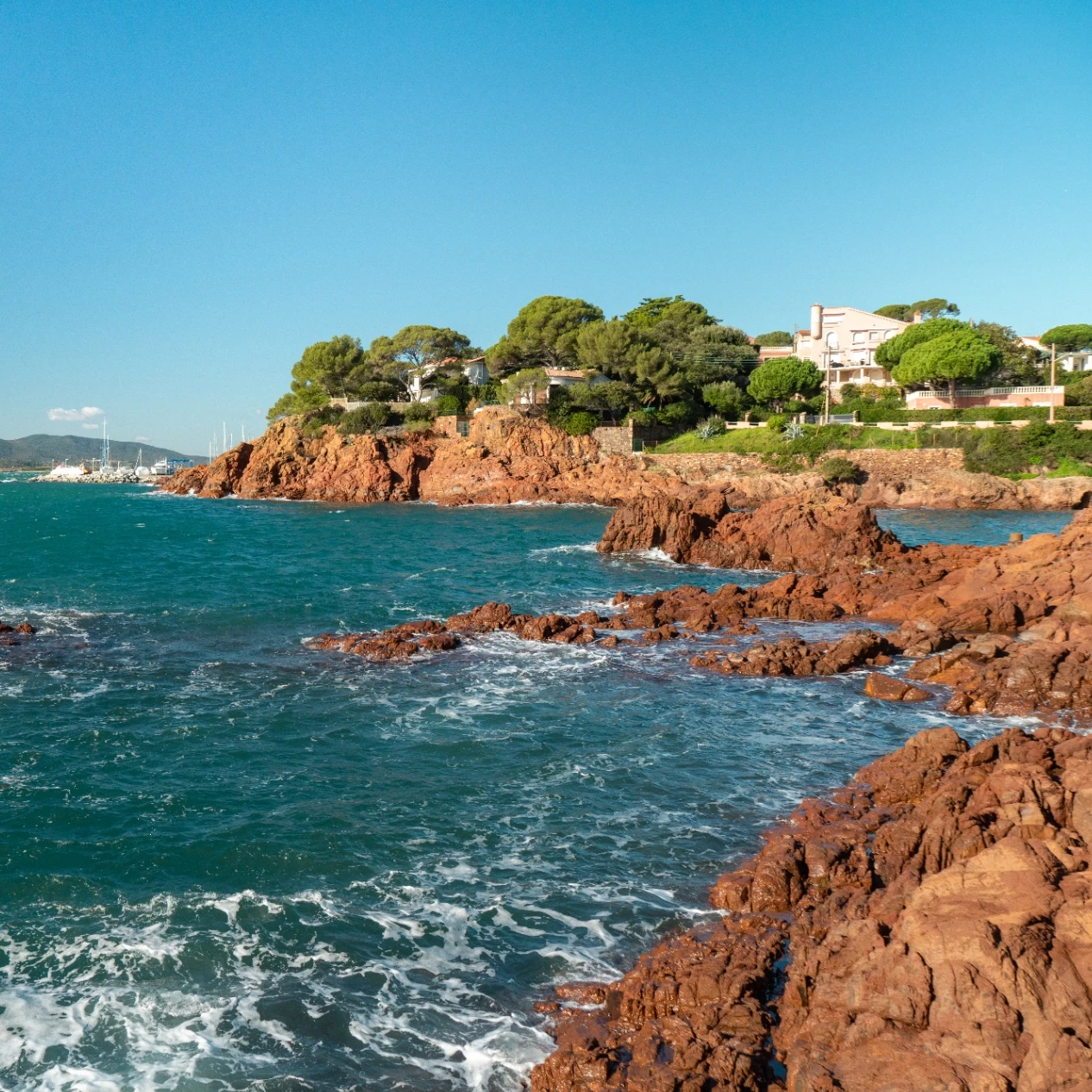Depuis le centre ville, juste derrière le port Santa Lucia, vous pouvez rejoindre le sentier du littoral, un chemin escarpé dans les roches rouges. Il longe la mer jusqu’à Boulouris, avec de nombreuses criques pour pique-niquer, se baigner ou faire demi-tour selon vos envies.