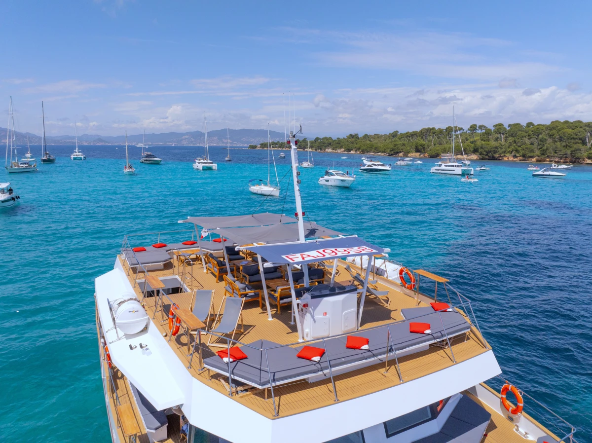 Au départ du port de Marina Baie des Anges, embarquez pour une après-midi d’évasion en mer, alliant découverte et escale dans un cadre enchanteur. Cap sur les îles de Lérins ou l’Anse de la Salis (selon les conditions météo), où le catamaran jettera l’ancre dans des eaux cristallines, propices à la détente. Installez-vous confortablement sur le pont, explorez les environs en paddle et savourez un apéritif servi à bord, le tout dans un décor d’exception. Collation et boissons softs incluses.