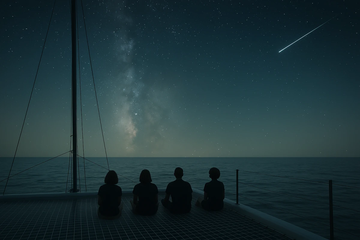 Au départ du port de Marina Baie des Anges, embarquez à bord de notre catamaran pour une croisière nocturne exceptionnelle à l’occasion de la Nuit des Étoiles Filantes.