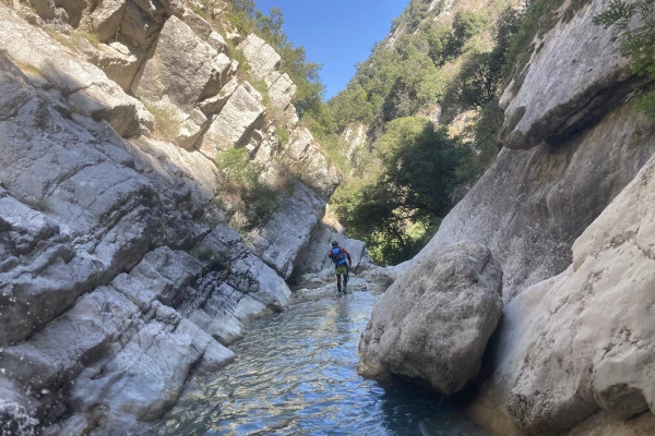 Le moniteur vous accueille au point de rendez vous, vous distribue le matériel individuel et vous embarque dans ce canyon découverte, après une petite marche de 10 minutes, vous voici dans le vif du sujet, vous franchirez les multiples obstacles rencontrés dans ce canyon en enchaînant les sauts, les rappels, les toboggans jusqu'à « la piscine » où les sauts les plus hauts vous attendent, différents étages y sont possible et un passage très ludique sous une cascade permet aux non sauteurs de descendre de façon originale et aux plus excités de remonter sauter, encore quelques obstacles nous emmènent ensuite au toboggan final puis à la magnifique plage de sortie du canyon, de là on remonte tranquillement en 20 minutes de randonnée en sous-bois au parking.