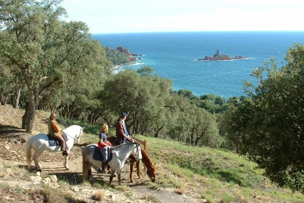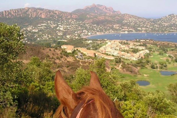 Cette sortie offre un panorama exceptionnel sur la mer, le regard embrassant la Méditerranée depuis les îles de Lérins jusqu'à la presqu'île de Saint-Tropez avec toujours l'Ile d'Or en point de mire.Profitez d'une promenade idéale pour les débutants, les bons cavaliers accompagnant leurs amis seront étonnés par l'agilité de nos chevaux dans la montée escarpée du Belvédère. Tous en selle !