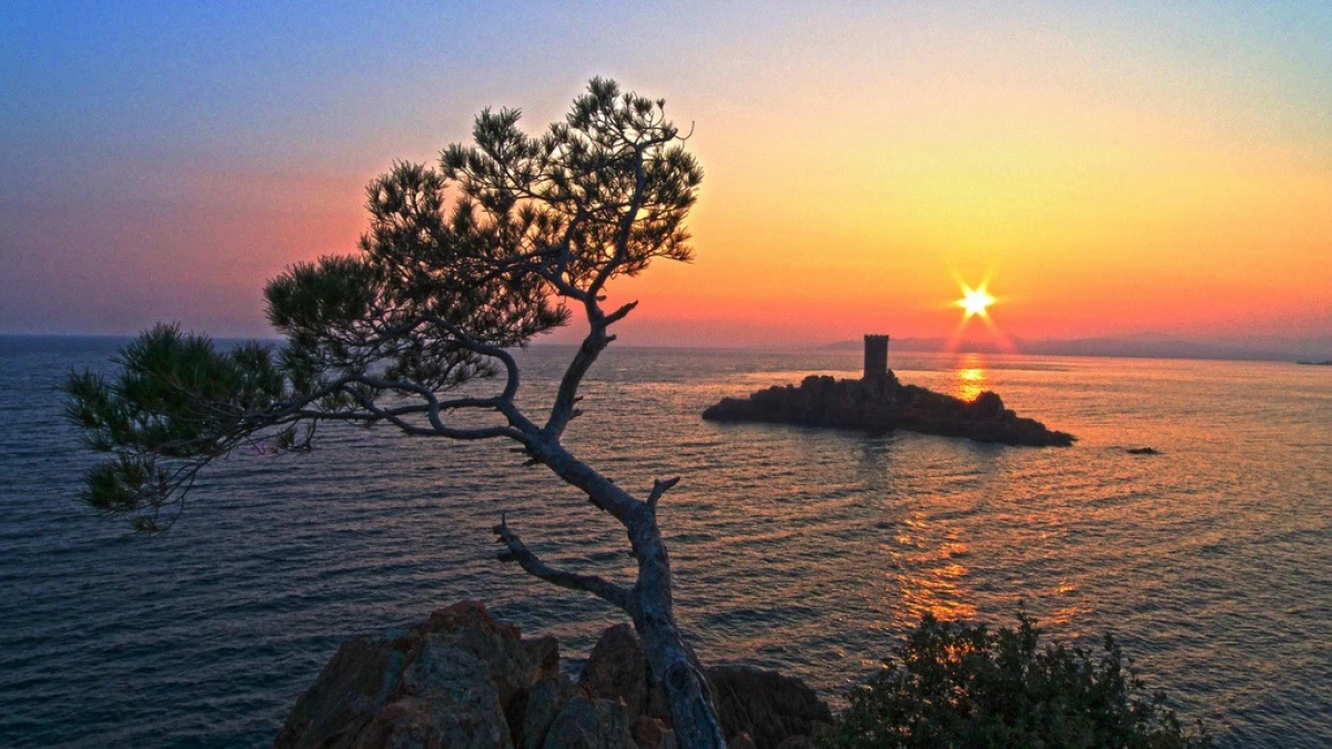 Admirez cet îlot emblématique de la Côte d’Azur, avec sa tour majestueuse et ses eaux cristallines.