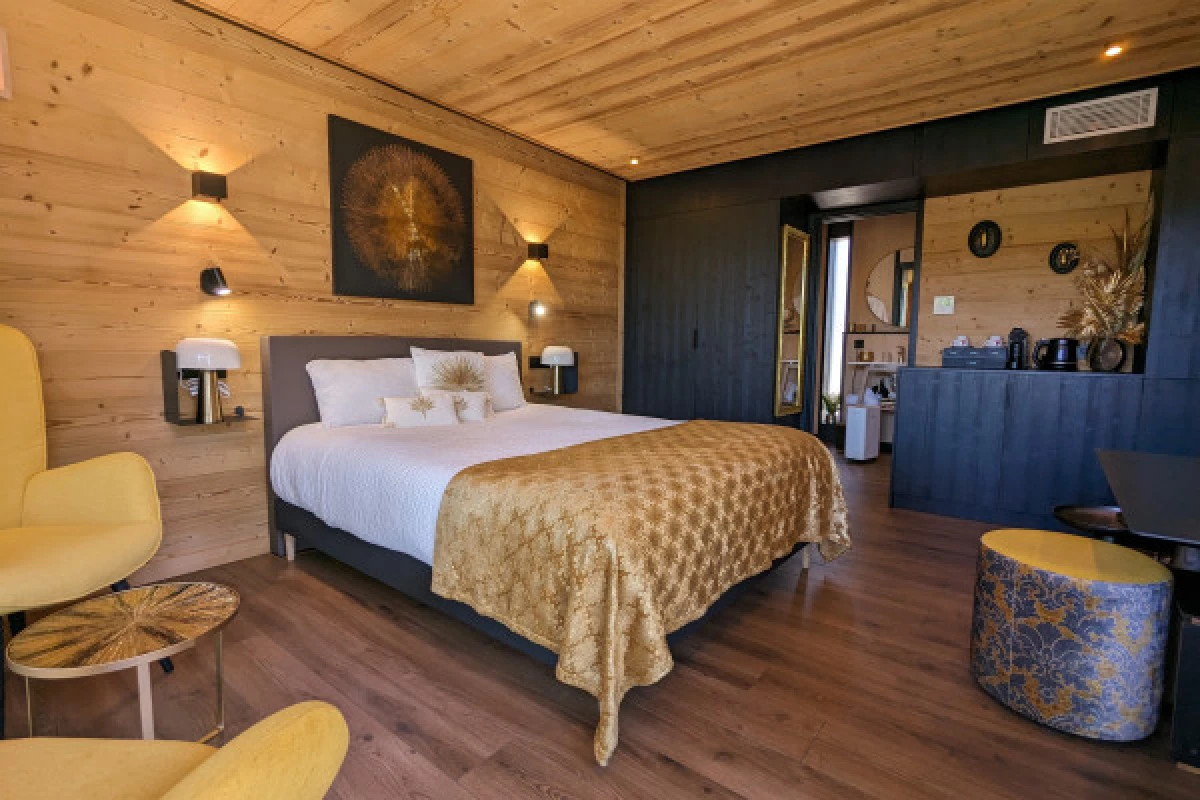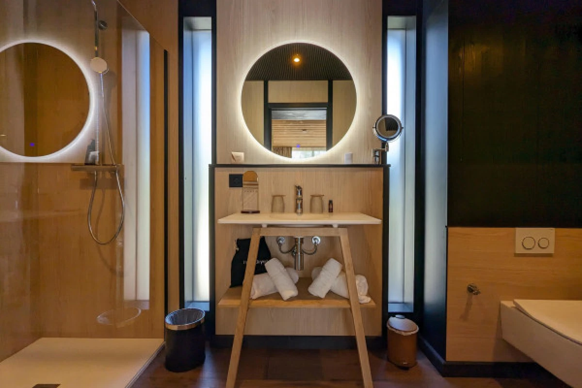 Vivez une expérience unique le temps d'une nuit dans un lodge tout confort situé dans le parc de l'hôtel, entouré de pins et face à la piscine. Un cadre idéal pour déconnecter et se ressourcer. D'une superficie de 20 à 25m2, chaque lodge entièrement faite de bois, écologique et moderne dispose d'une salle de bain avec douche, lit double 160x200, mini-bar, coffre-fort, plateau de courtoisie (thé et café), climatisation réversible, smart TV, sèche-cheveux, WIFI et terrasse.