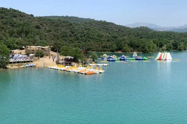 Sortie 39 Fayence, les Adrets de l'Estérel. Suivre le Lac de Saint Cassien sur 7km. Au bout du second pont, la plage Eco-Beach et son parking se trouvent sur votre droite.